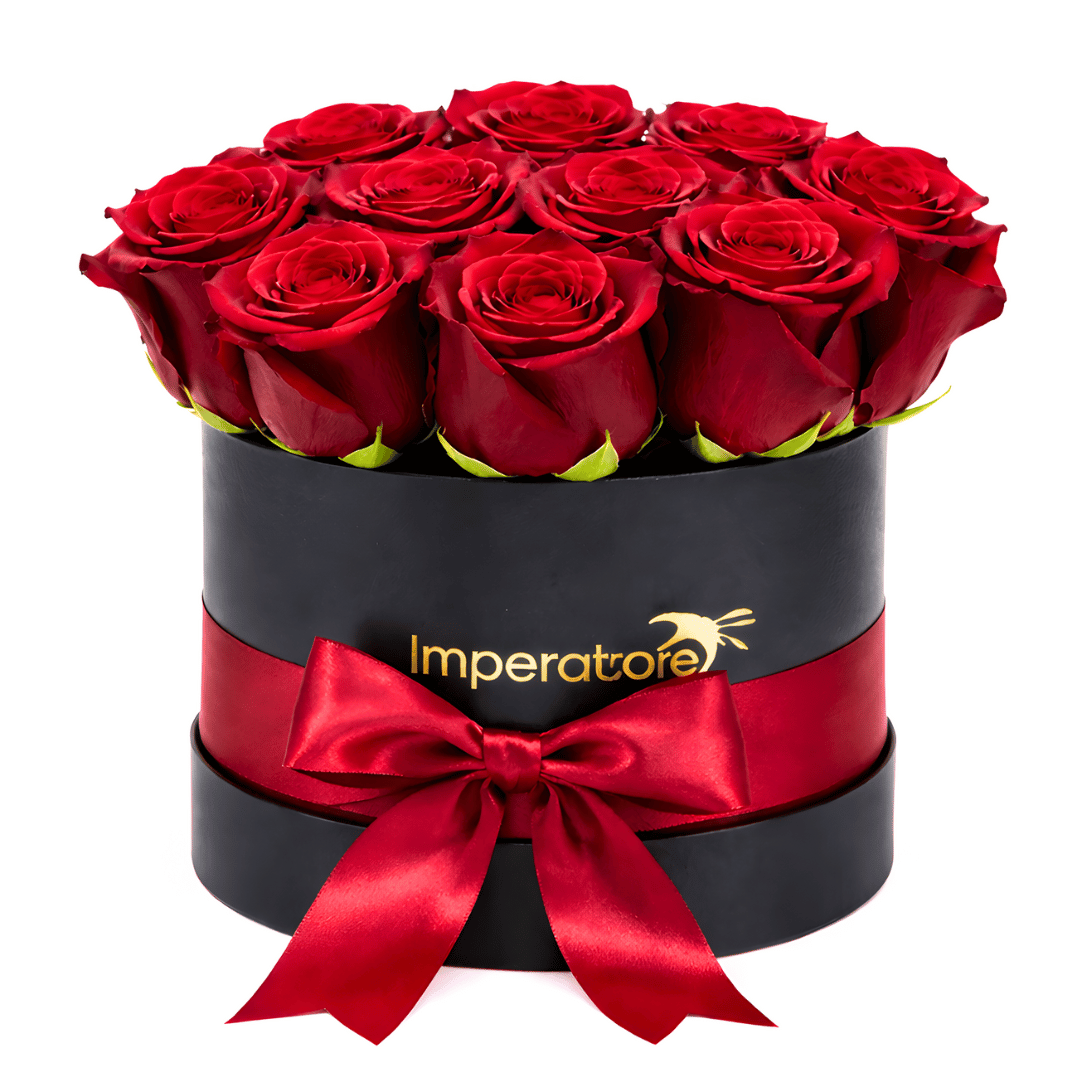 La Composizione: Le rose sono inserite fresche in una spugna idrofila nascosta, che ne preserva la durata e la forma senza bisogno di travasi. Il tutto è avvolto da un nastro di raso rosso coordinato.