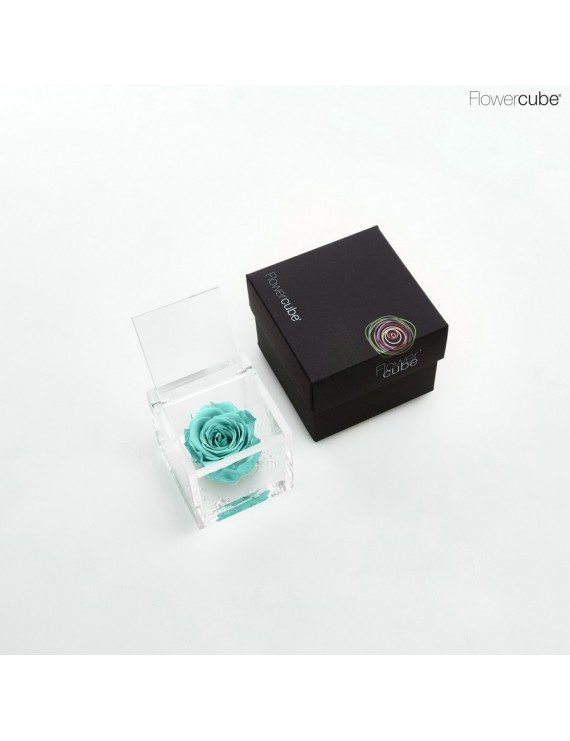FLOWERCUBE – Rosa Eterna Turchese/Turquoise (cubi 6×6 / 8×8 / 10×10 cm) con cofanetto